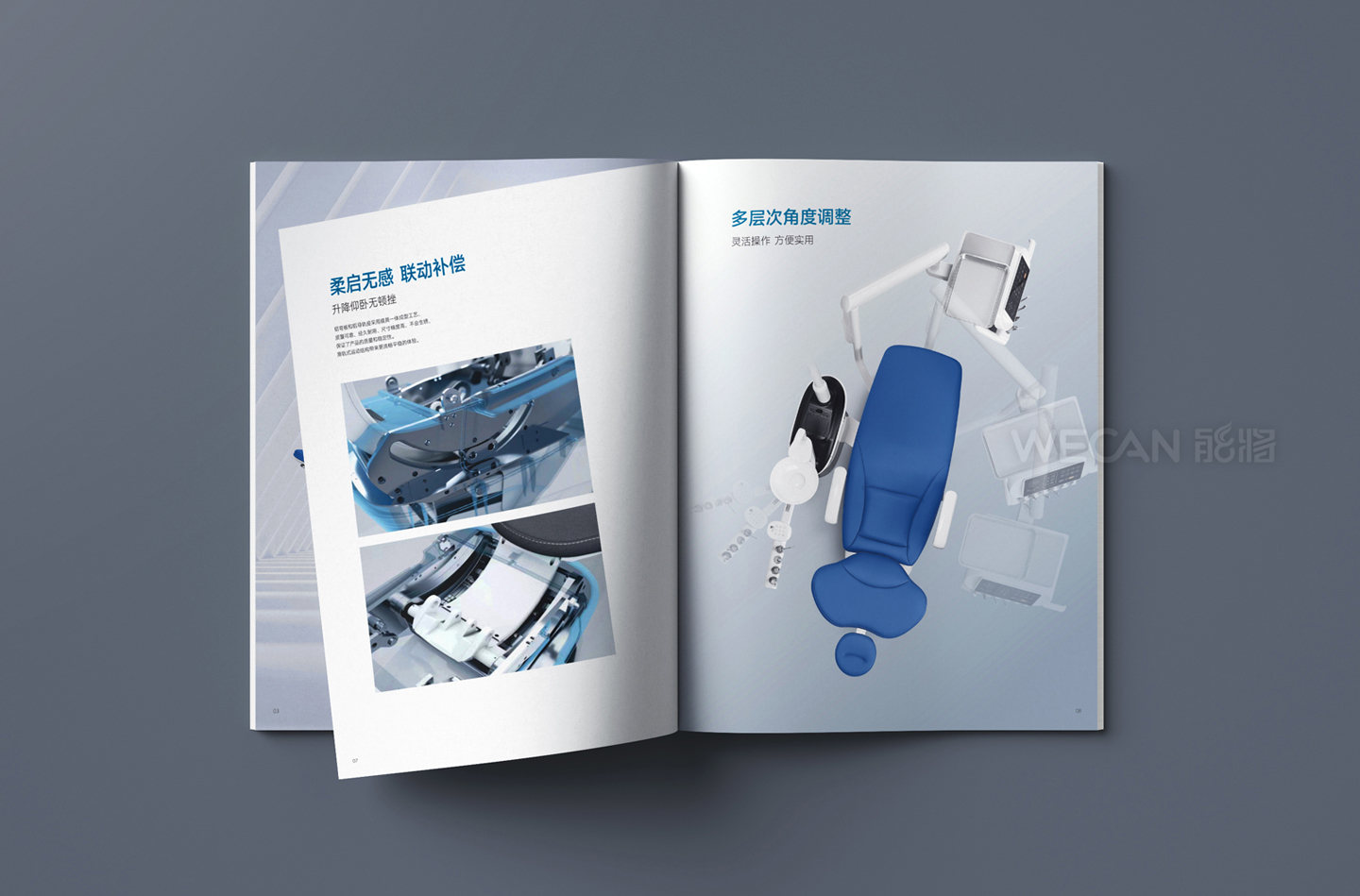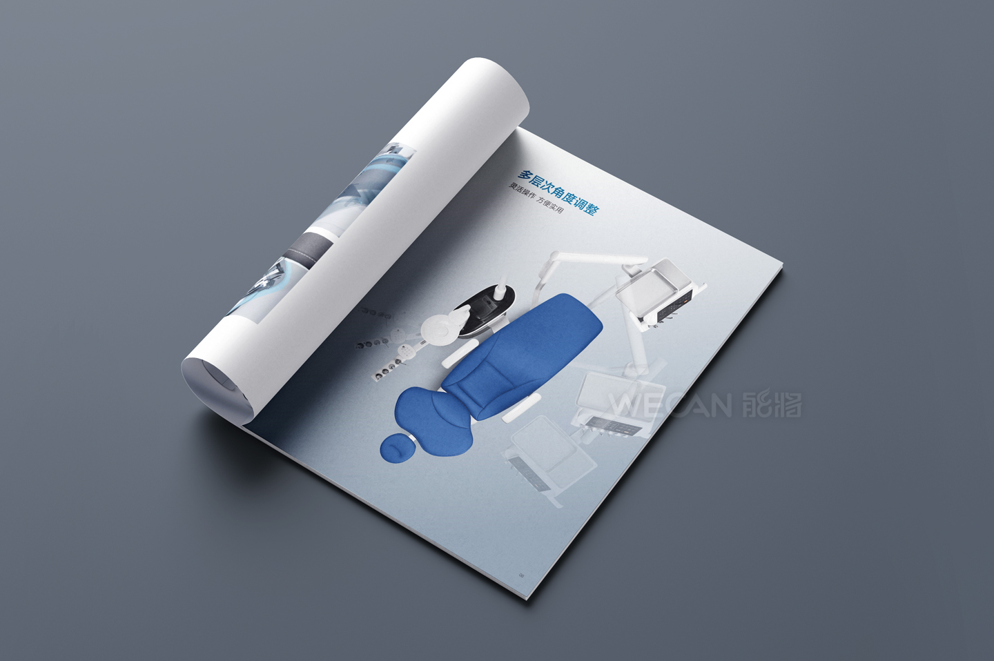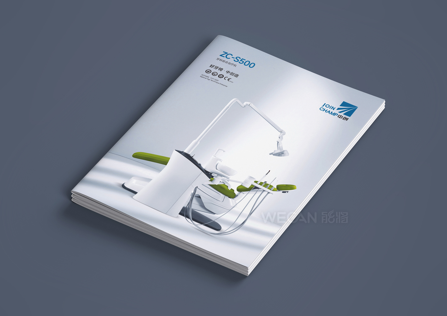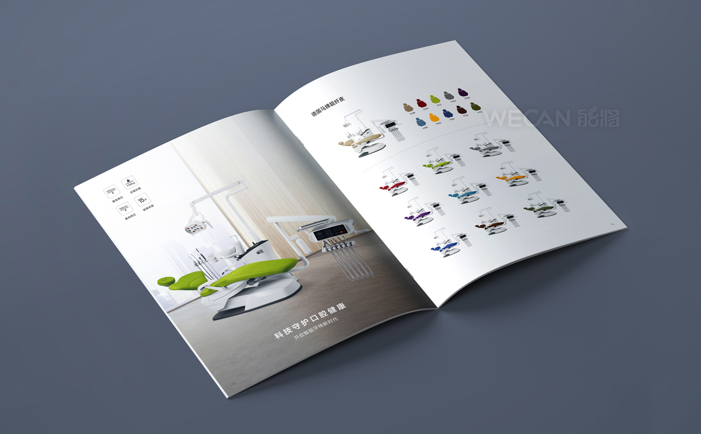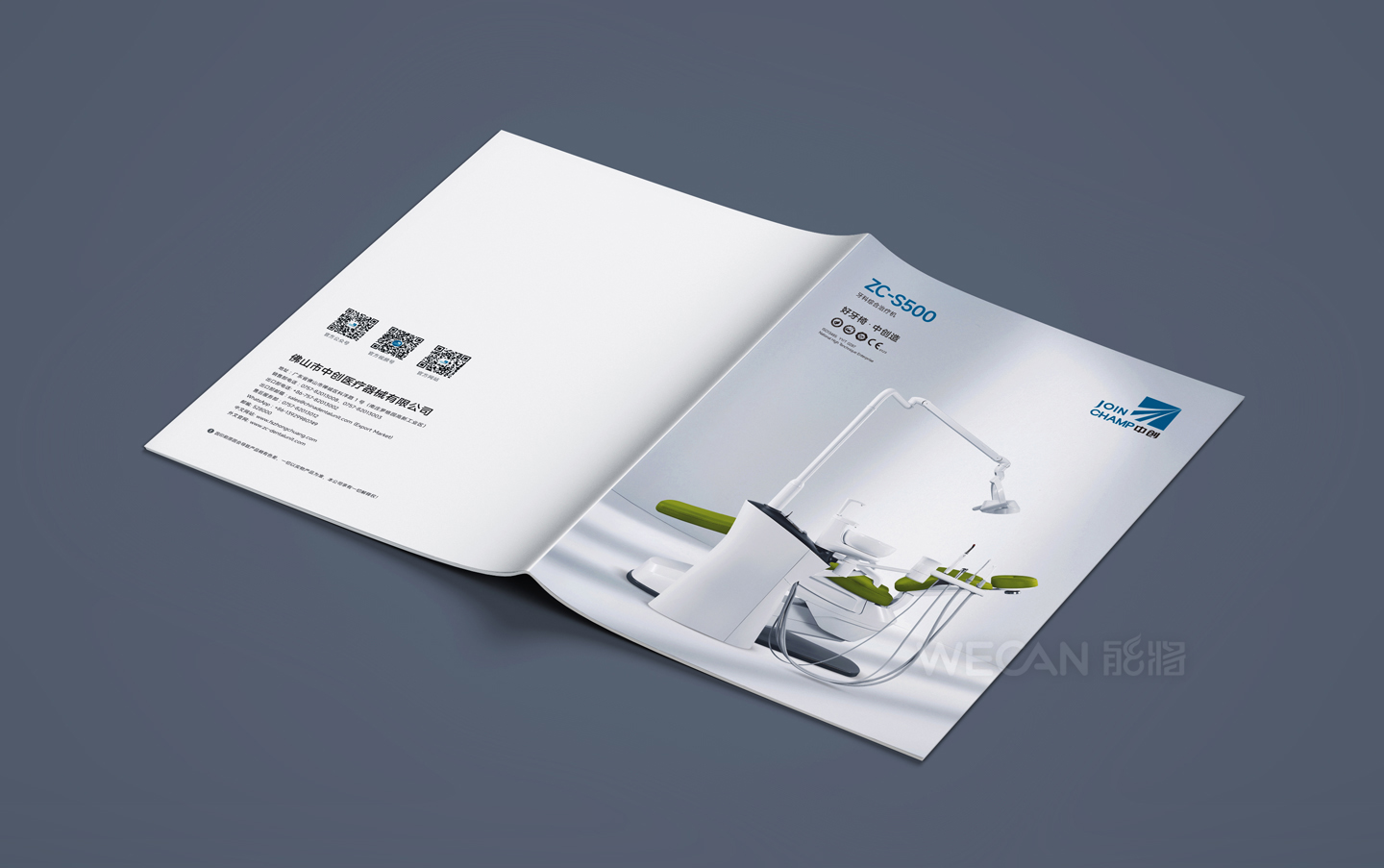 中创医疗器械拥有丰富而出色的产品群体,本次所展示的产品画册是中创交由我们负责设计的其中一个系列产品。作为行业领先的牙科器械品牌,中创的产品定位非常国际化,因此产品画册的设计同样也是走国际、时尚、简约的方向,同时我们更融入了生活元素和运用了湖水蓝的色调,能充分体现了一种清新和健康的感觉。