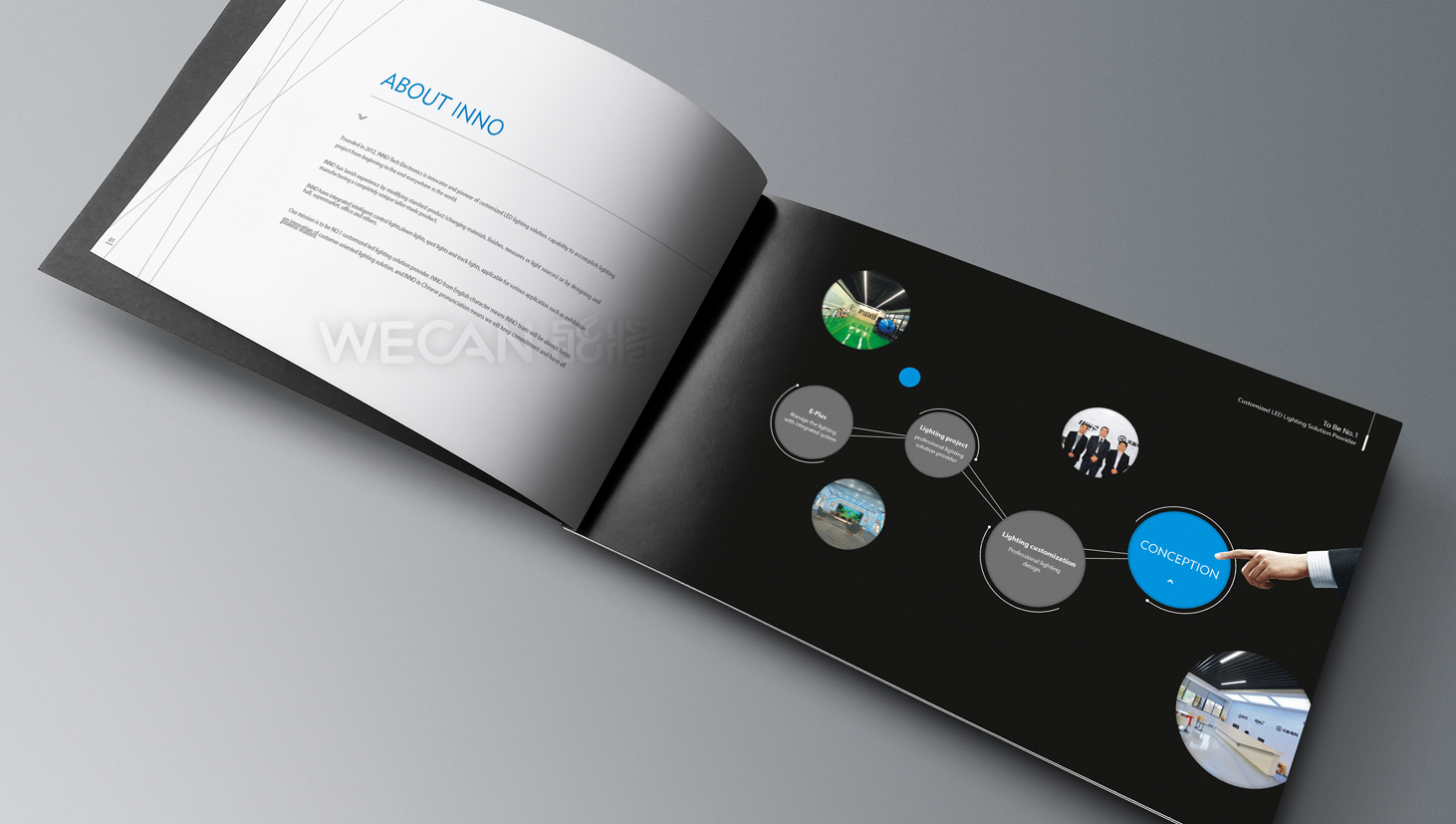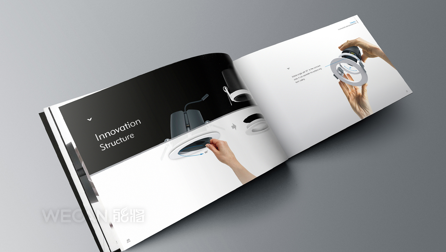 为了表达因诺产品的出色效果,产品广告设计运用了一种极具创意的设计手法,就是将一个灯光聚焦、万众瞩目的球场融合到因诺的灯具当中,让全场眩丽夺目、场面震撼难忘,寓意因诺的产品总能达到让人超乎想象照明效果。而因诺的产品画册设计风格非常简约国际化,与因诺全球化市场战略完全符合,同时产品画册中的产品的外观、结构、特性、参数、应用、种类等细节都介绍到位,特显严谨务实,有效助力因诺的产品推广和营销。