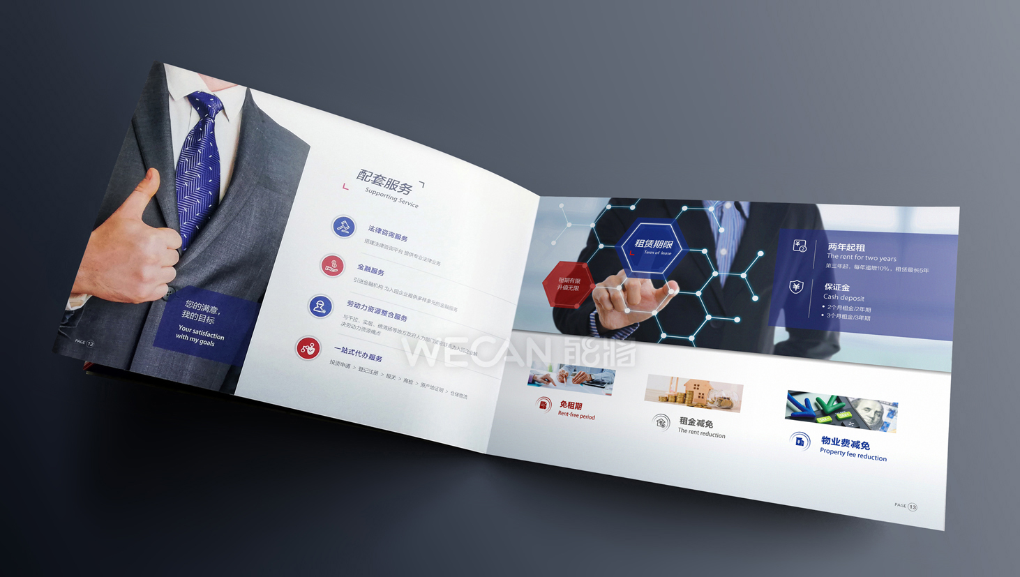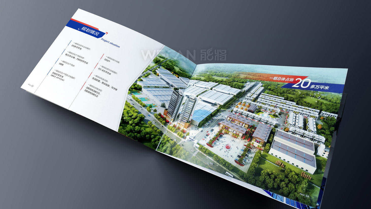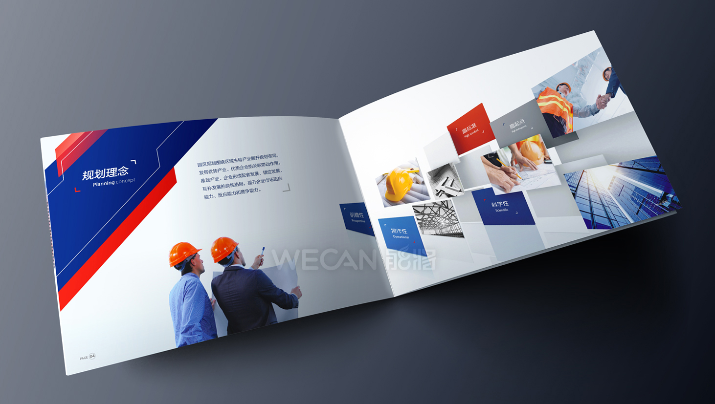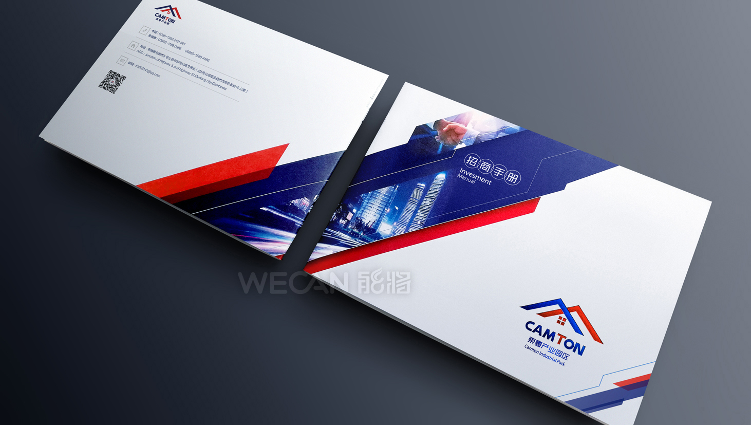 柬粤产业园招商册设计以吸引眼球和精准传递项目信息作为目的前提,从招商册的资料整合、精华亮点提炼、版块布局、地理分析等全方位的把控,成功让工业地产与商务风格的结合,通过招商册的“包装”,为柬粤产业园塑造一个跨国产业园的示范形象。招商册运用了较为跨跃性的版面设计,结合冲击性较强的色彩搭配,吸引众多客商的关注。另外考虑招商册跨国性的使用需求,招商册采用了便携式的横向小尺寸,与此同时横向尺寸更有利于各个招商推介场合PPT的使用。