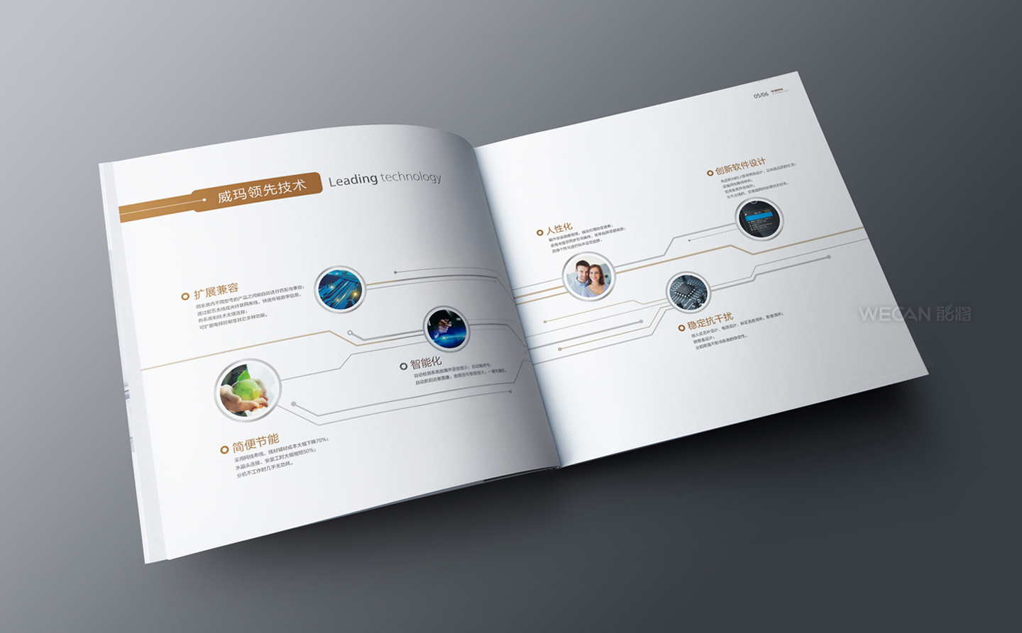 具有时尚生活风格的产品是当今市场最为流行和普遍的,均适用于大部份家用和商用,因此威玛比较注重对此类风格产品推广的投入,而为了产品形象的塑造,能将为威玛的画册设计注入了许多时尚生活和科技元素,整本画册清新简约、科技时尚,不论在家庭或产品的情景设计都渲染了一种时尚生活风格。为了力求完美,整本画册从设计、工艺、造型、产品摄影、印刷制作均由能将严格把控,让画册的效果得到了保证。
