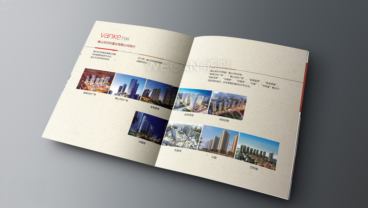 万科秉承对每一个项目的开发、设计、筹备等各个环节都精益求精、尽善尽美,坚持以卓越的推广形象呈现到人们的视野中。能将为万科置业佛山公司设计的项目推广画册融入了万科品牌标志、色调等到相关的基础元素,同时突出了生活化、精致感、简约时尚的设计原则,在大致到整本画册的设计,细节到画册的尺寸、工艺、用纸等印刷制作都通心精心的创作,让人们能够从中感受到万科对项目对每一位客户的重视。