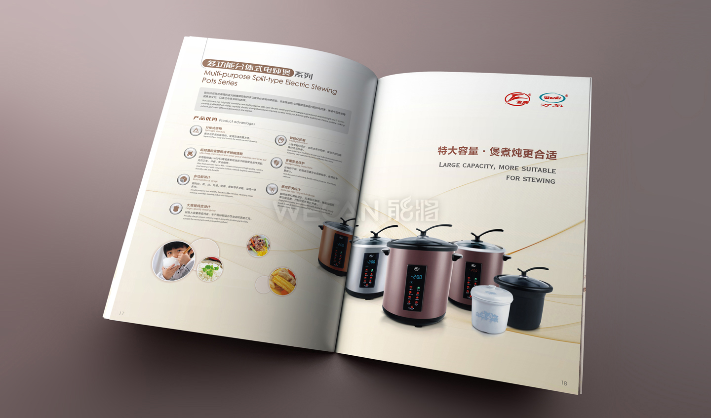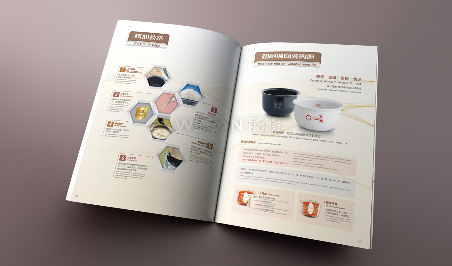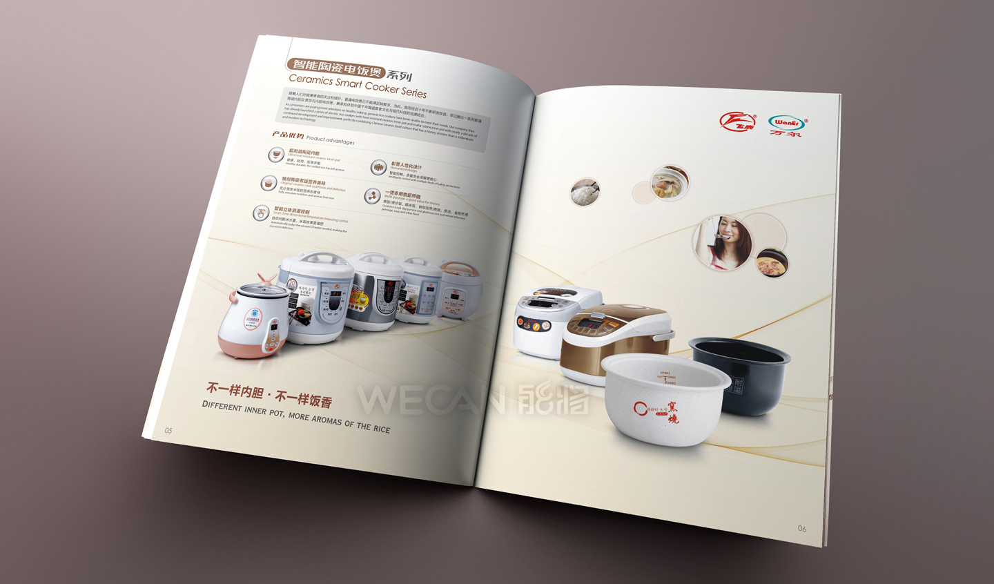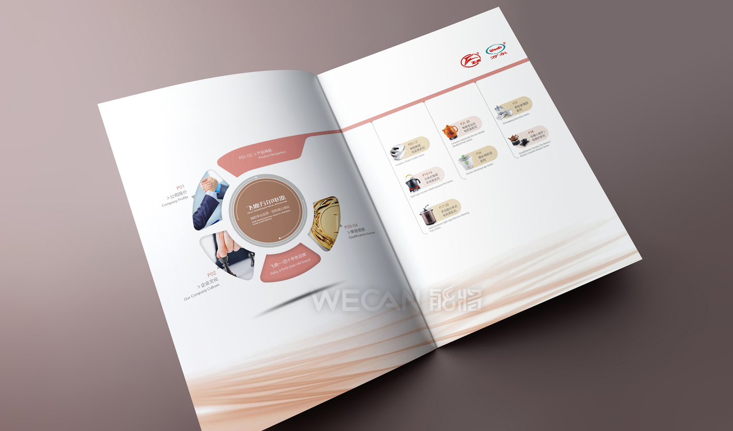 飞鹿万尔电器产品画册设计具有时尚现代和养生古典两类风格差异较大的产品同时展示的特点,在体现时尚生活风格的同时要兼顾养生产品的结合,最终飞鹿万尔电器产品画册的设计采用了前两者混合的设计风格,巧妙地体现了其特点,时尚不失养生的中国元素。